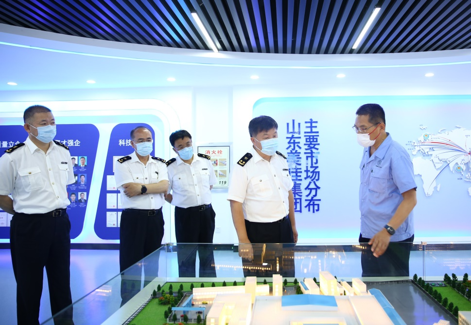 6月9日,青島海關(guān)黨委委員、副關(guān)長(zhǎng)袁濤,法規(guī)處處長(zhǎng)張術(shù)杰、稽查處處長(zhǎng)王濱在日照海關(guān)關(guān)長(zhǎng)李君實(shí)、副關(guān)長(zhǎng)馬成軍等領(lǐng)導(dǎo)的陪同下蒞臨美佳集團(tuán)調(diào)研指導(dǎo)。集團(tuán)董事長(zhǎng)、總裁申照華,常務(wù)副總裁郭曉華,副總裁費(fèi)守成等陪同活動(dòng)。